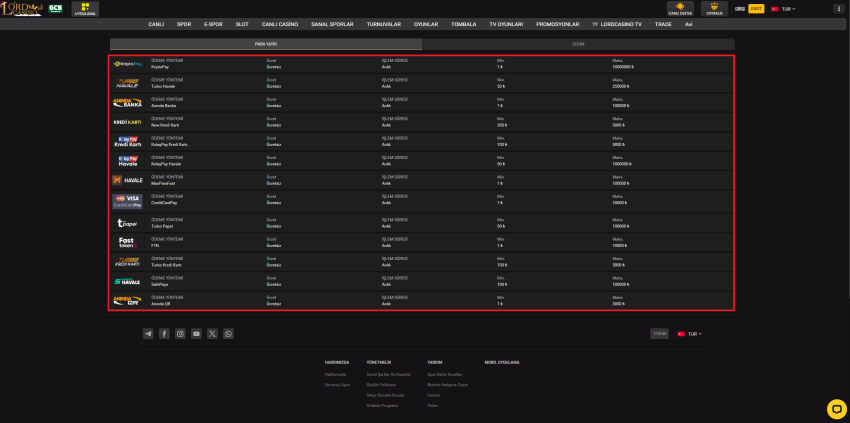 Lordcasino canlı bahis ile kolay bir şekilde para kazanmak artık çok kolay! Lordcasino ile yeni tanışmış olan tüm yeni bahis severlere bol şanslar niteliğinde hoş geldin bonusu tanımlıyoruz. Hoş geldin bonusları ile para kazanma şansınızı arttırıyor, bahis zevkini son derece üst seviyelerde yaşatıyoruz. Para kazanırken eğlenmek istiyorsanız doğru adresin Lordcasino olduğunu anlayacaksınız. Sanal bahis ile para kazanma yolları için ilk olarak güncel giriş linklerinden resmi internet sayfamıza erişim sağlamanız gerekmektedir. Sosyal medya hesaplarımız ve resmi internet sitemiz üzerinden paylaştığımız güncel giriş adresleri ile dolandırıcı ve sahte hesaplar tarafından para kaybı yaşamamanız için bizi takip edin. Lordcasino para yatırma 2026 işlemi nasıl gerçekleştirilir ve nelere dikkat edilmelidir? Belirtilen adımları doğru ve eksiksiz tamamlayarak para yatırma işleminizi gerçekleştirebilirsiniz.